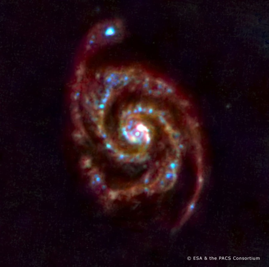 Three-color far-infrared image of M51, the Whirlpool Galaxy.