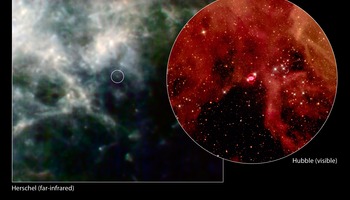 The Hershel data were taken by the Photodetector Array Camera and Spectrometer, and the Spectral and Photometric Imaging Receiver, at wavelengths of 100, 160 and 250 microns, which are just about one-tenth to one-quarter of a millimeter.