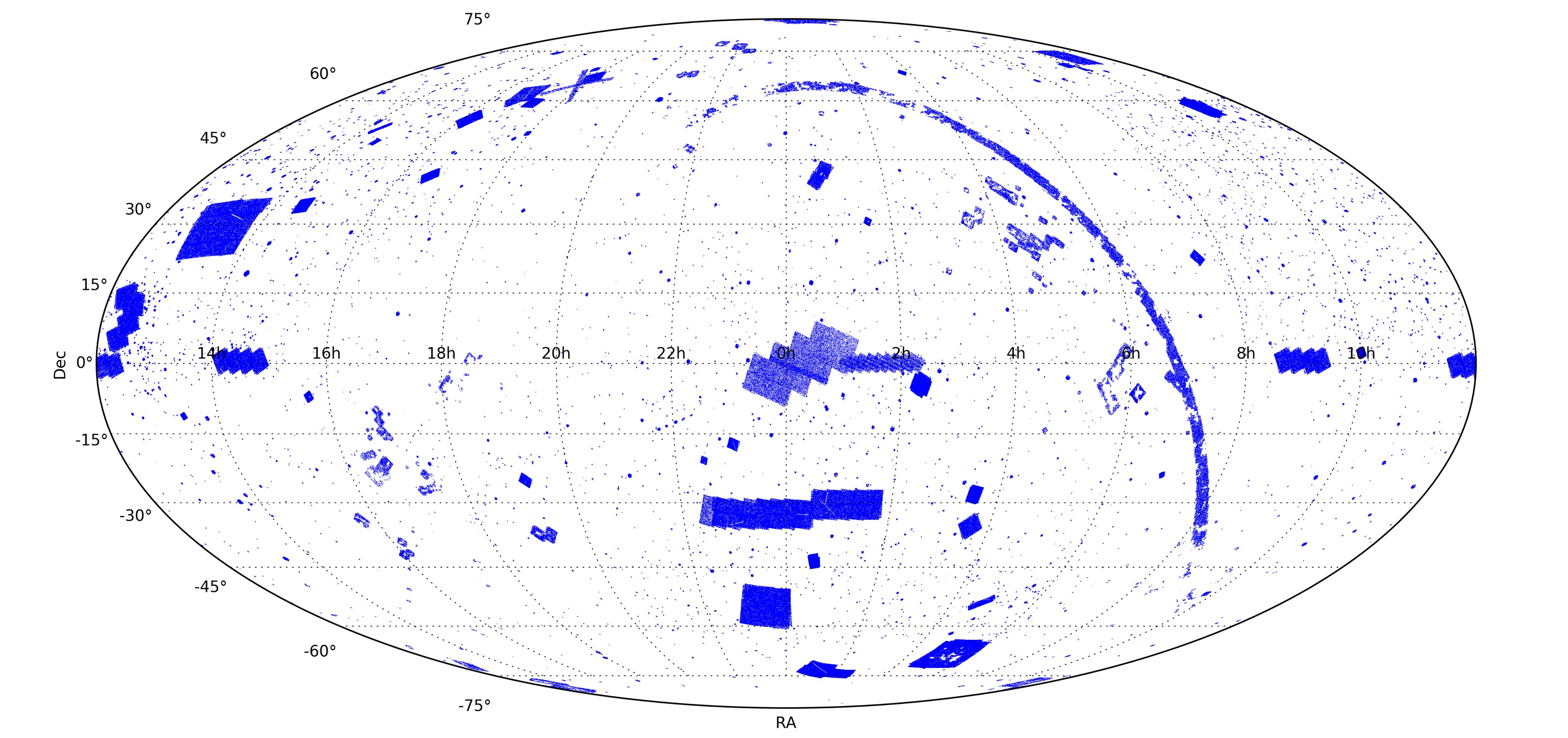 The SPIRE point source catalogue was extracted from a total of 6878 Herschel/SPIRE observations, consisting of a serendipitous mix of programme science observations and calibration observations performed in standard configurations with sky coverage to various depths. Thanks to the instrument's great sensitivity, depth was much less of a limiting factor than extragalactic and galactic background confusion. To maintain a high degree of reliability, the team opted to impose a limit on structure noise, leading to the exclusion of parts of the galactic plane and a few other regions that are bright in the sub-millimetre band.