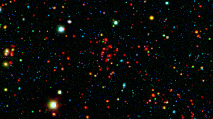 Researchers studying distant galaxies get a peek into the past since the galaxies' light takes time, sometimes billions of years, to reach us. Brodwin and his colleagues used Spitzer to study 16 galaxy clusters that existed between the time our universe was 4.3 and 6 billion years old. Spitzer's infrared vision allows it see the dust warmed by new stars, revealing star-formation rates. NASA's Hubble Space Telescope and the W.M. Keck Observatory were used to measure the galaxies' distances from Earth.